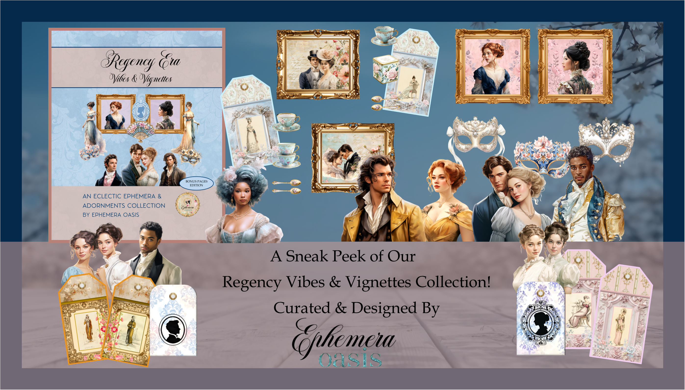 Our latest ephemera collection, Regency Era Vibes & Vignettes inspired by modern-day and traditional classic Regency era interpretations such as Jane Austen’s classic books, and many other television series honoring the fabulousness of The Regency Era and its Regency Era Ton!